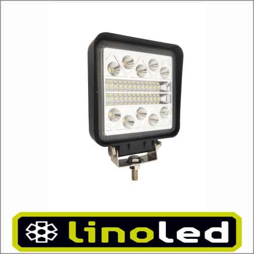 Dit is een led werklamp met een enorme lichtopbrengst ( 10200 lumen!!). 102 watt combi straler ( breedstraler en verstraler) Deze led werklamp is voorzien van 34 x 3 watt Osram high intensity leds. De behuizing van deze lamp is net zo groot als een 27 watt werklamp.